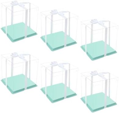 Celebrate special occasions with our 6-pack of elegant, clear cake boxes (10" x 10" x 9"). These 2-layer, transparent containers, perfect for 8-inch cakes, boast a sturdy food-grade PET construction and a protective film to ensure your baked goods arrive pristine. The included white ribbon adds a festive touch, ideal for birthdays, weddings, or any celebration. The sturdy cardboard base provides reliable support, while the clear design showcases your culinary masterpiece. These versatile boxes (suitable for cakes, cupcakes, and more) are easily assembled and offer a stylish, professional presentation for your bakery goods or homemade treats.