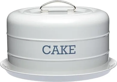 Preserve your delicious homemade cakes with the KitchenCraft Living Nostalgia Cake Tin Storage. This stylish French Grey airtight cake tin boasts a vintage charm with its powder-coated steel construction and "CAKE" print. Its clever 2-in-1 design features a flat base and a tall domed lid, easily separating to become a serving platter. The secure silicone seal keeps cakes fresh, ideal for storing Christmas cakes or everyday bakes. Measuring 28.5 x 18 cm, this durable and easy-to-clean (hand wash only) tin offers quality guaranteed with a 12-month warranty. Keep your baked goods perfectly preserved and elegantly presented with this charming storage solution.